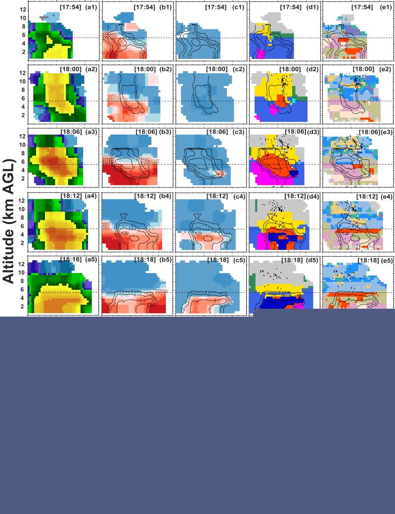 那么,与强上升气流同时存在密切关联的两个间接对象闪电活动与ZDR/KDP柱,同时也都身为各自领域内强对流的代表,它们之间存在怎样的关系?针对该问题,美国Eric C. Bruning教授团队在近几年陆续发表了系列论文进行讨论并取得了一定的认知,但是仍存在结果不能完全自洽,其原因主要是因为这种间接关系的物理本质尚不明晰。